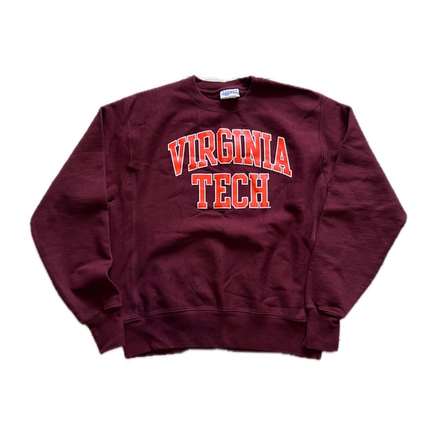Champion Reverse Weave sweatshirt Brand: Champion Size: M 実寸 着丈 64cm 身幅 59cm 肩幅 50cm 袖丈70cm Made in MEXICO US規格のチャンピオンカレッジスウェット。 えんじボディーにフロントにラバープリントでバージニア工科大学のプリントされた1着。 全体的にいい状態だと思います。 肉厚でへたりも少なく裏起毛もふかふかです。 年代物になりますので神経質な方などはご理解のほどよろしくお願い致します。 写真と実際の色合いは若干異なります。