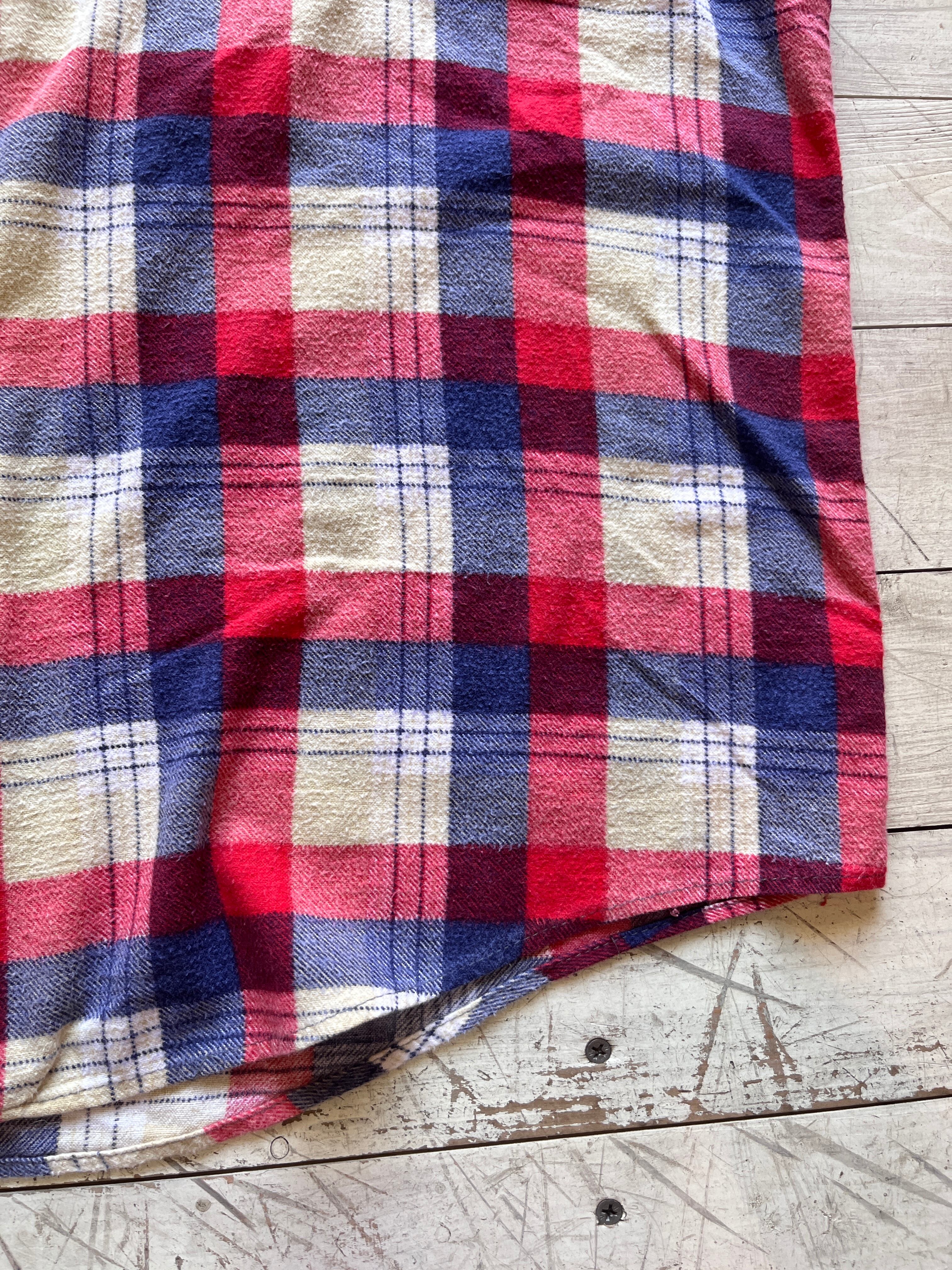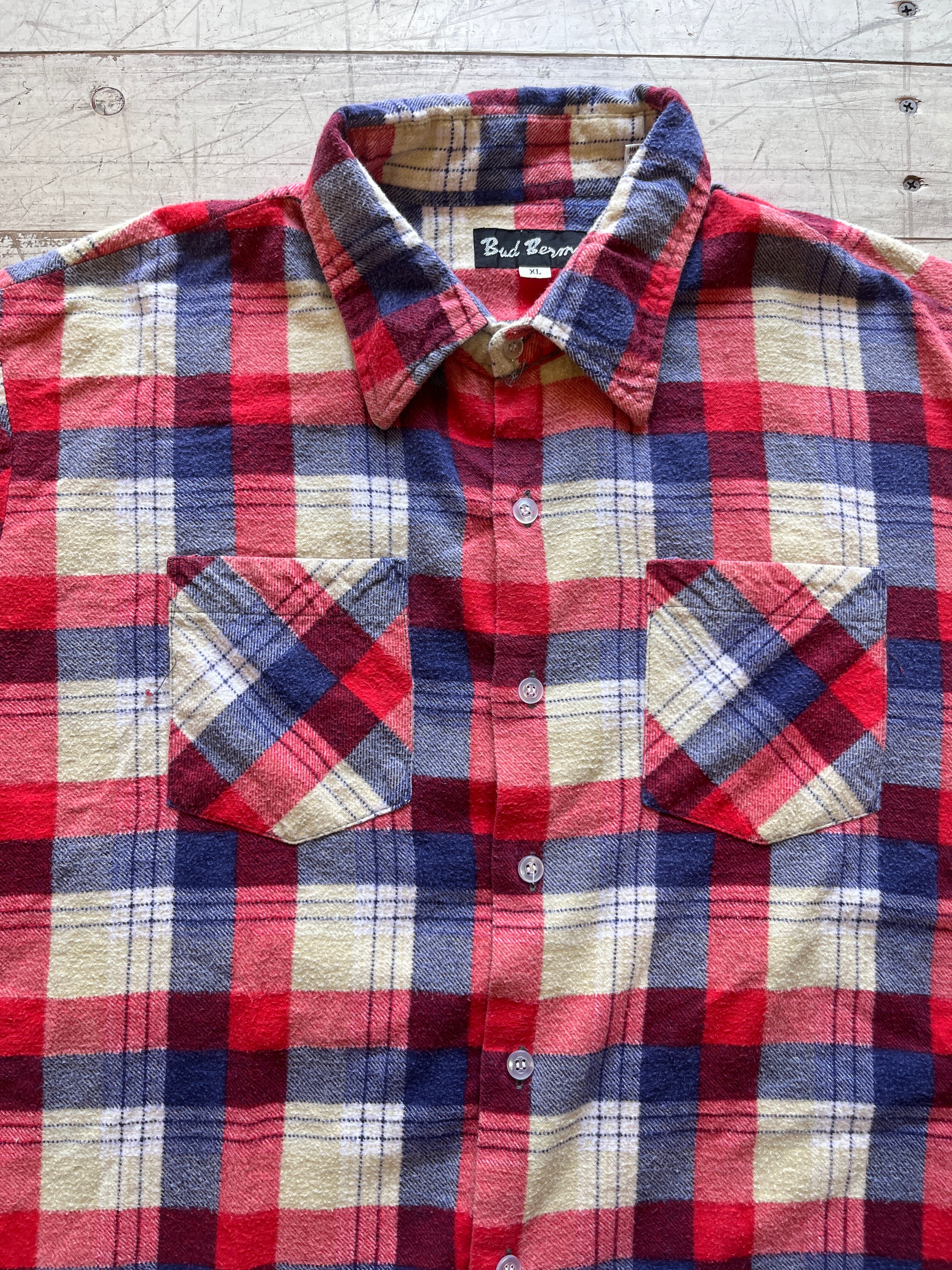 コットン100%の赤青ベースになっているプリントネルシャツ。