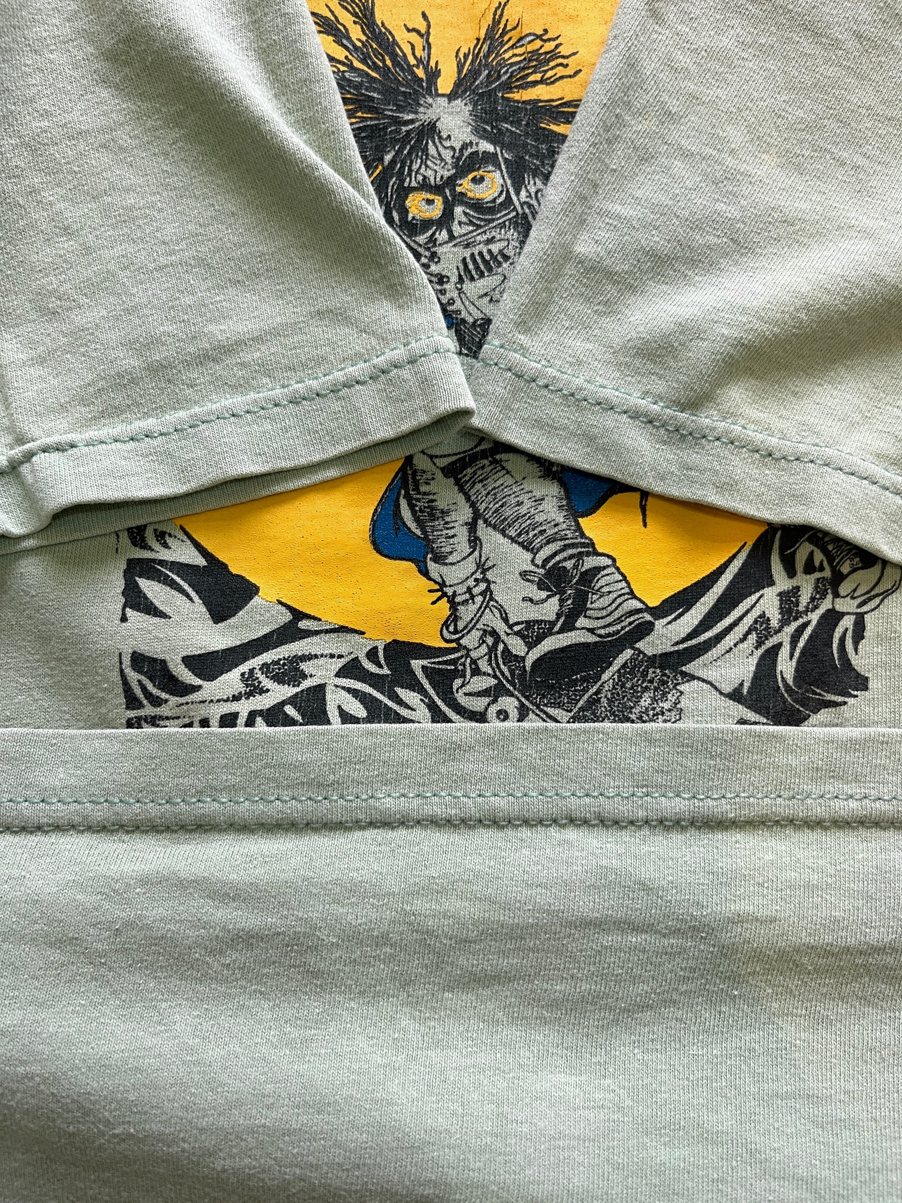 うぐいす色のようなボディーのスラッシャー Tシャツ。