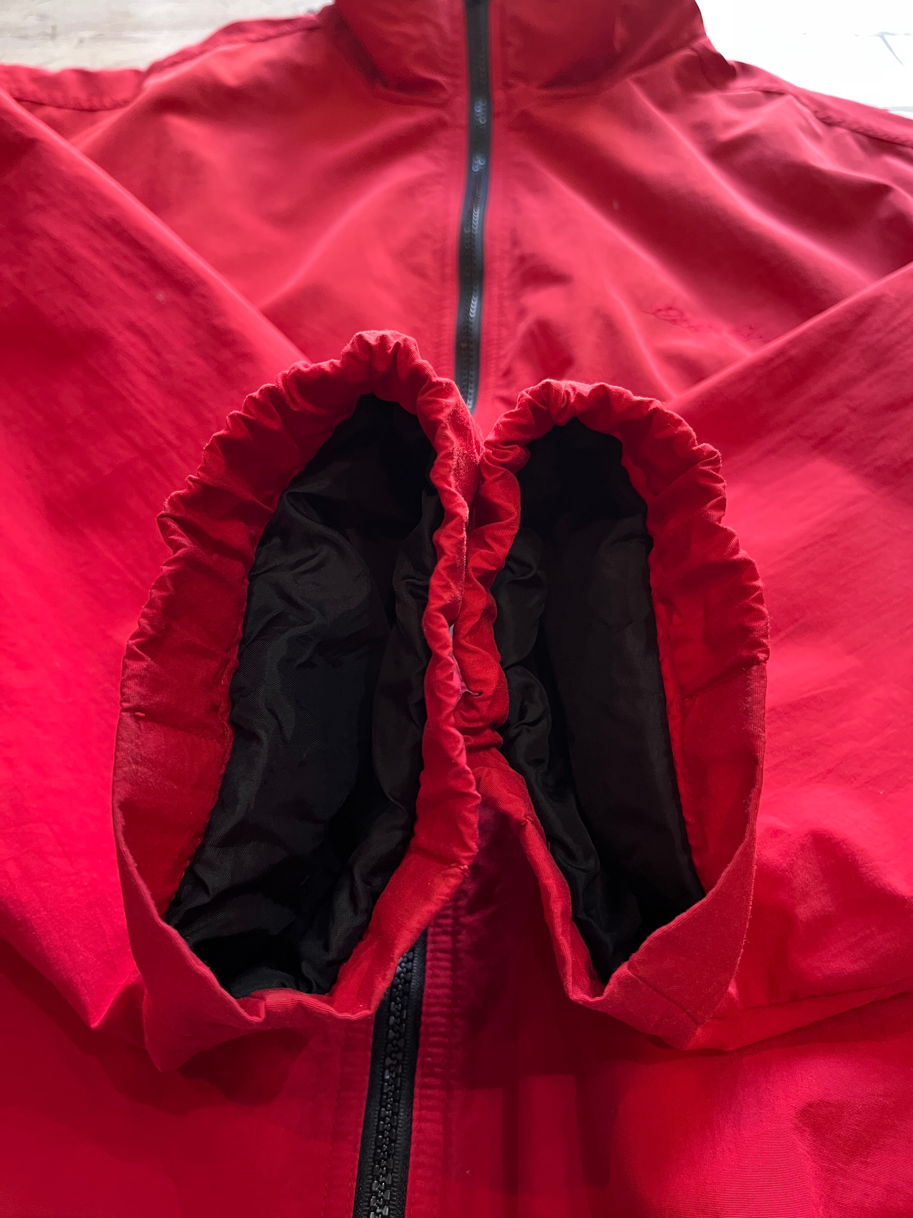90年代赤のジップアップナイロンジャケット。