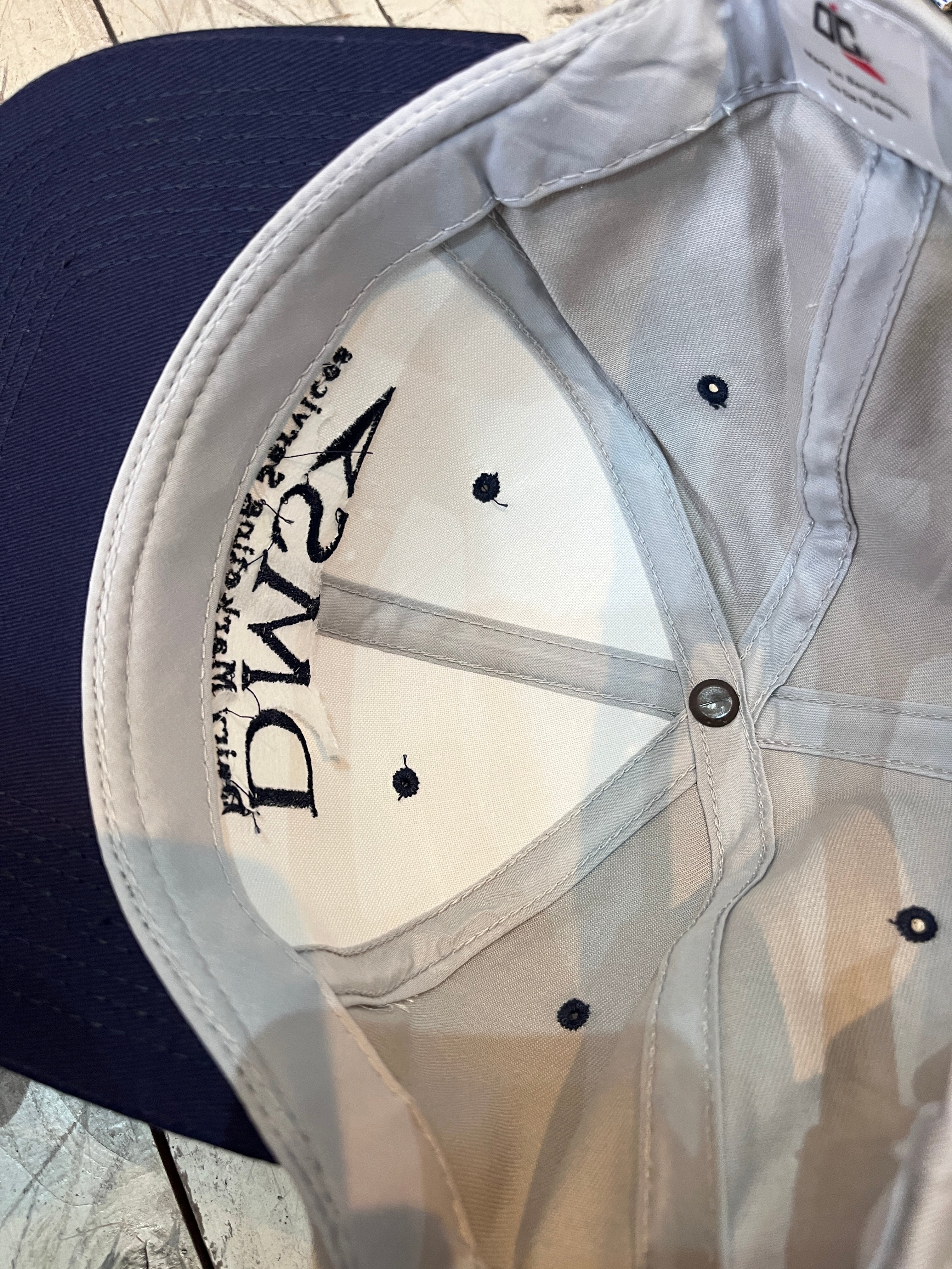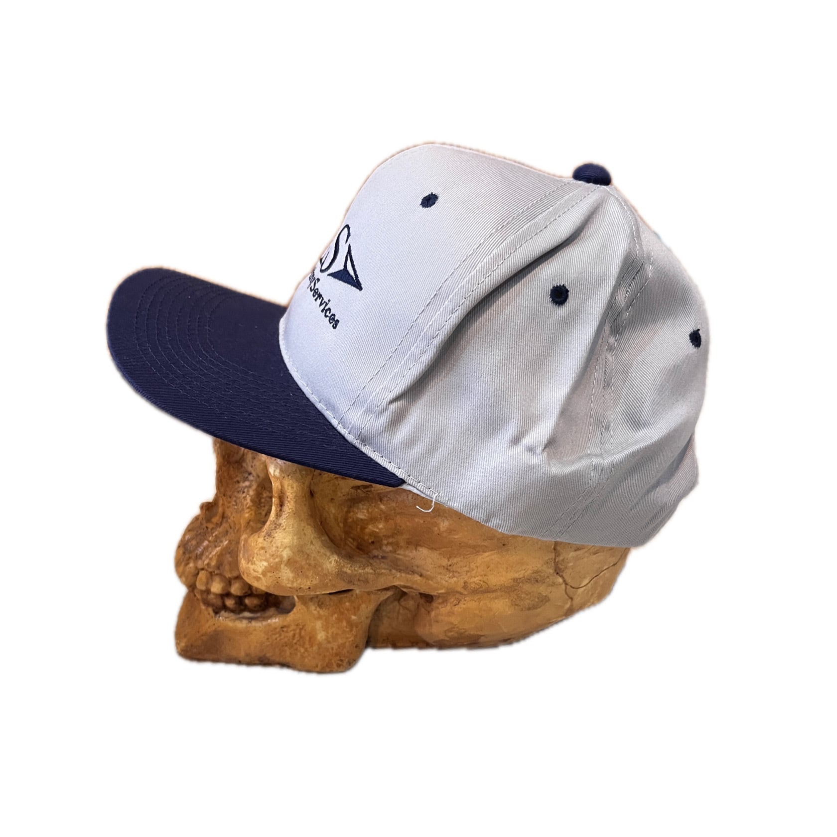 グレー×ネイビーの企業名が刺繍された1点。