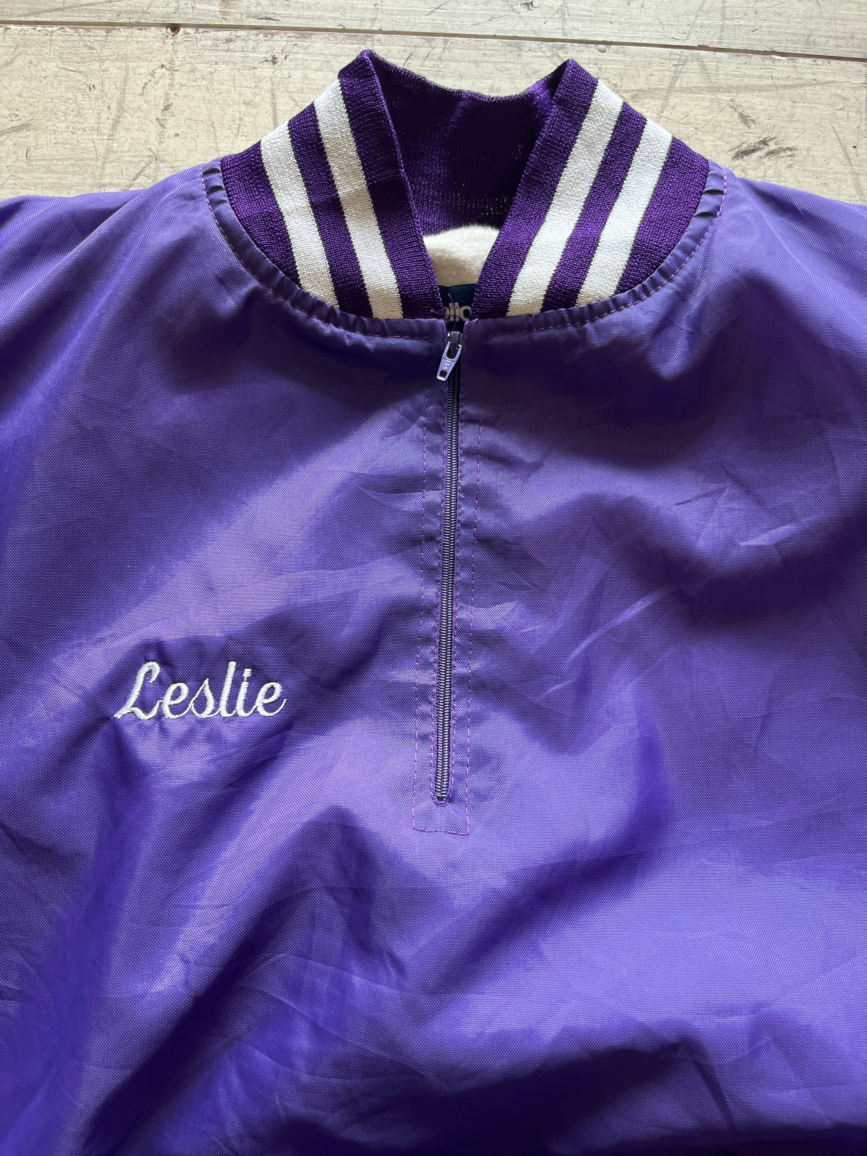 ムラサキのハーフジップナイロンジャケット。