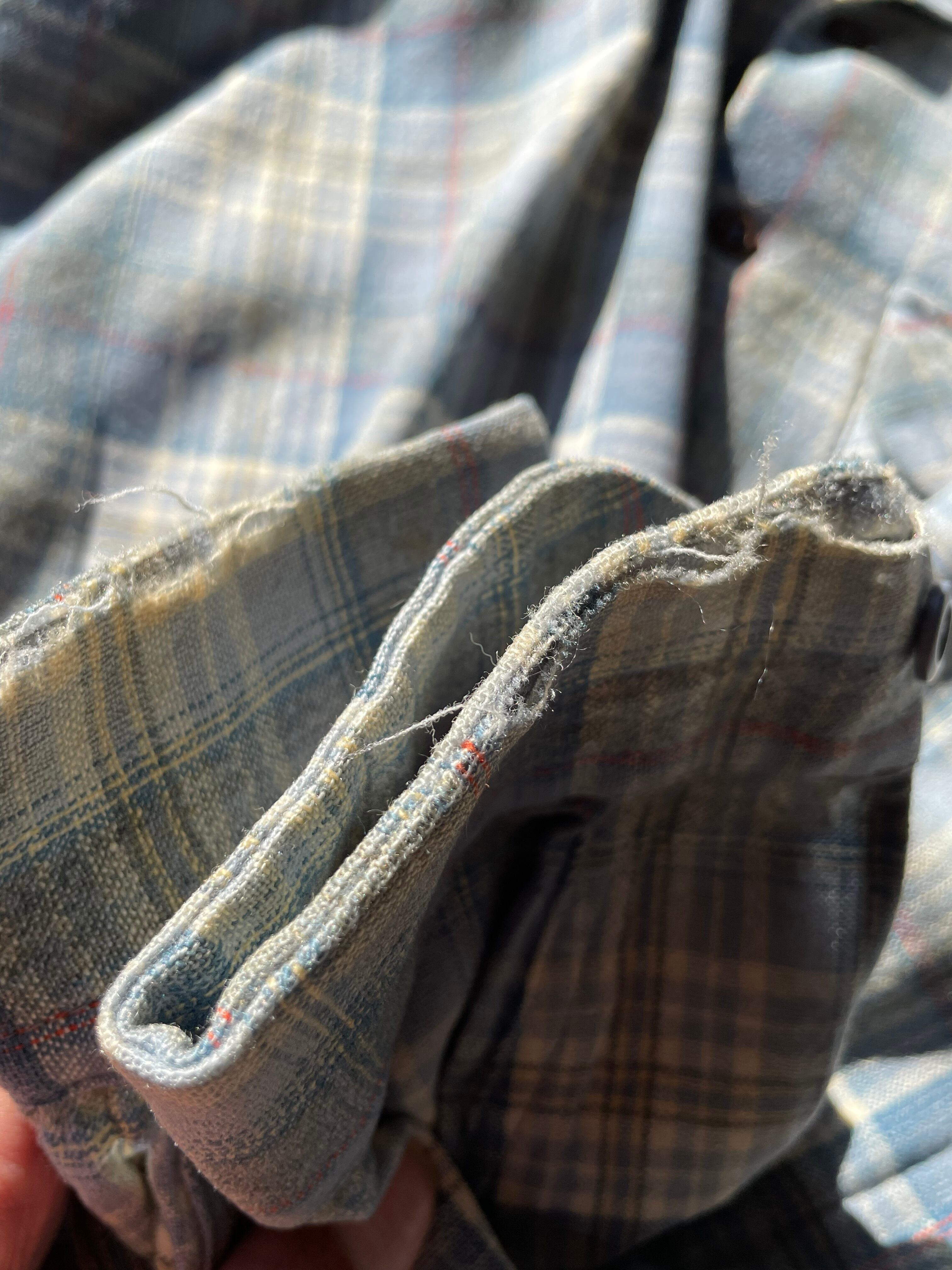 全てドライクリーニングに出しておりますが40年以上前のウールシャツの為、縮みやウール本来の肌触りの低下、写真に載せきれていない虫食いによる穴などがあることもありますがご理解の程よろしくお願い致します。