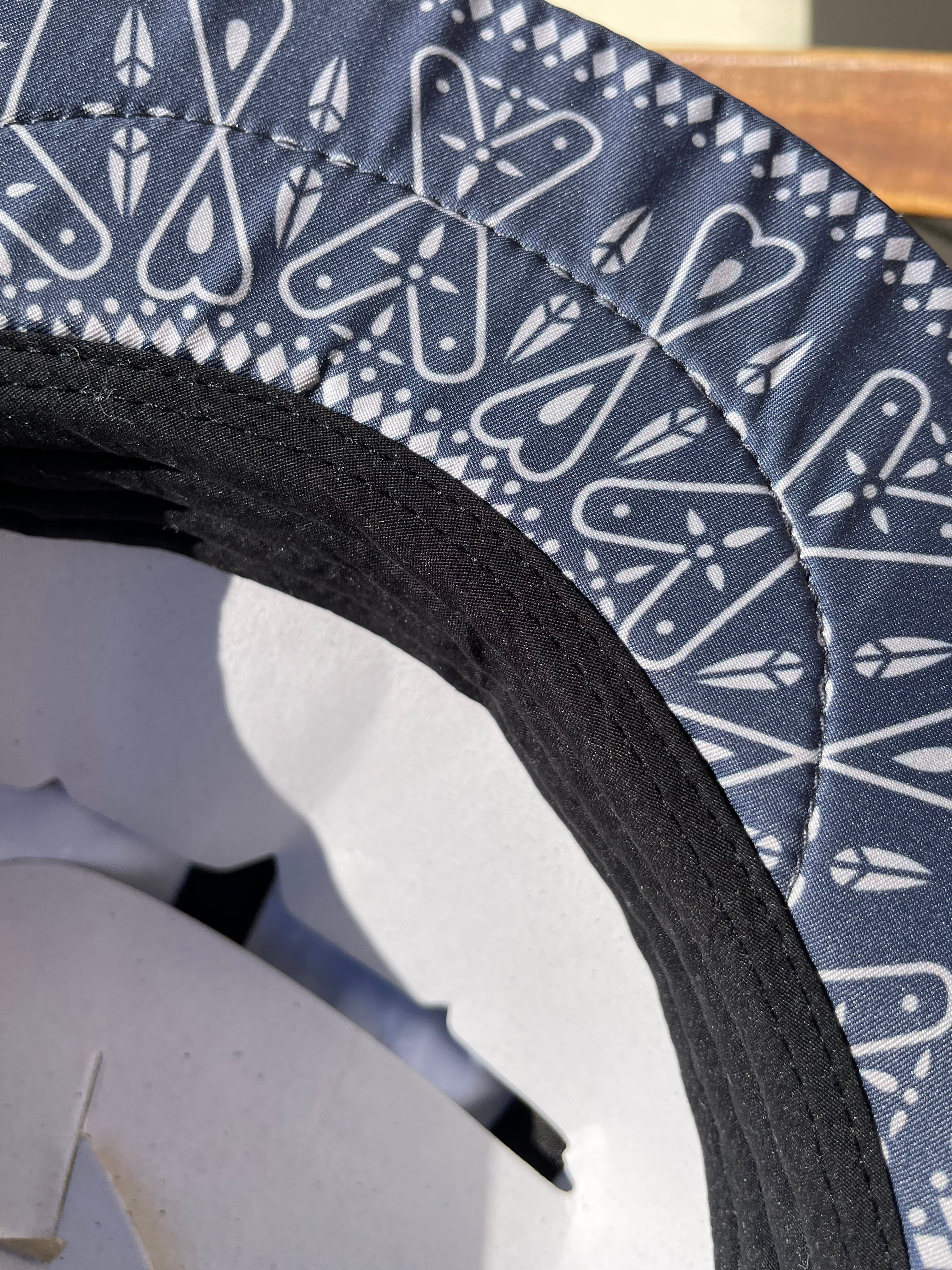 80's〜90'sのオールドスクール感が漂うクロスバンダナパターンは白い生地からデジタルプリントを施し、つばウラのデザインにはよく見るとピースマークが隠されていたりと大人たちには色褪せない雰囲気をかもしだしてます。