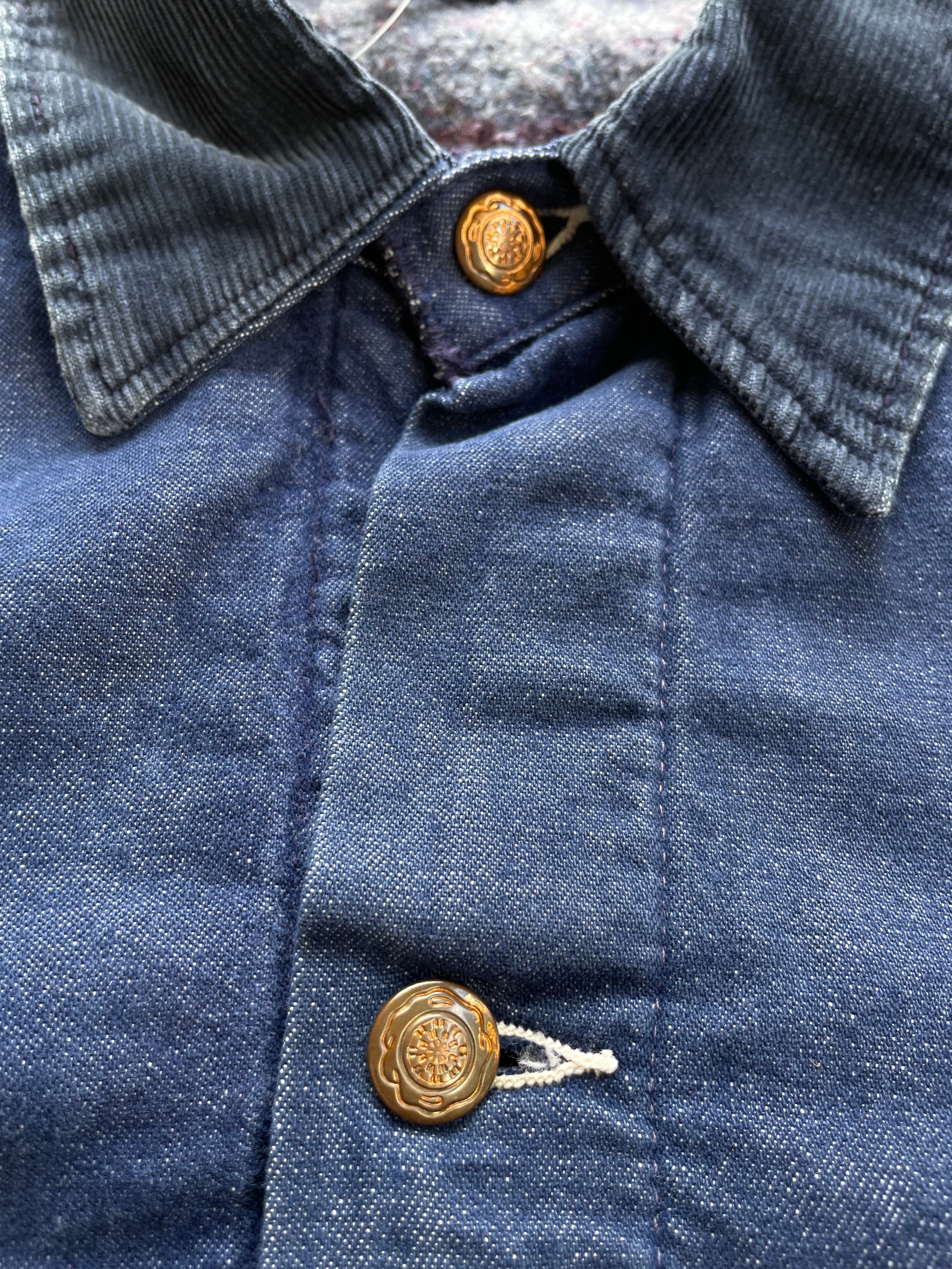 襟がコーデュロイでライトオンスの薄めのデニム地。