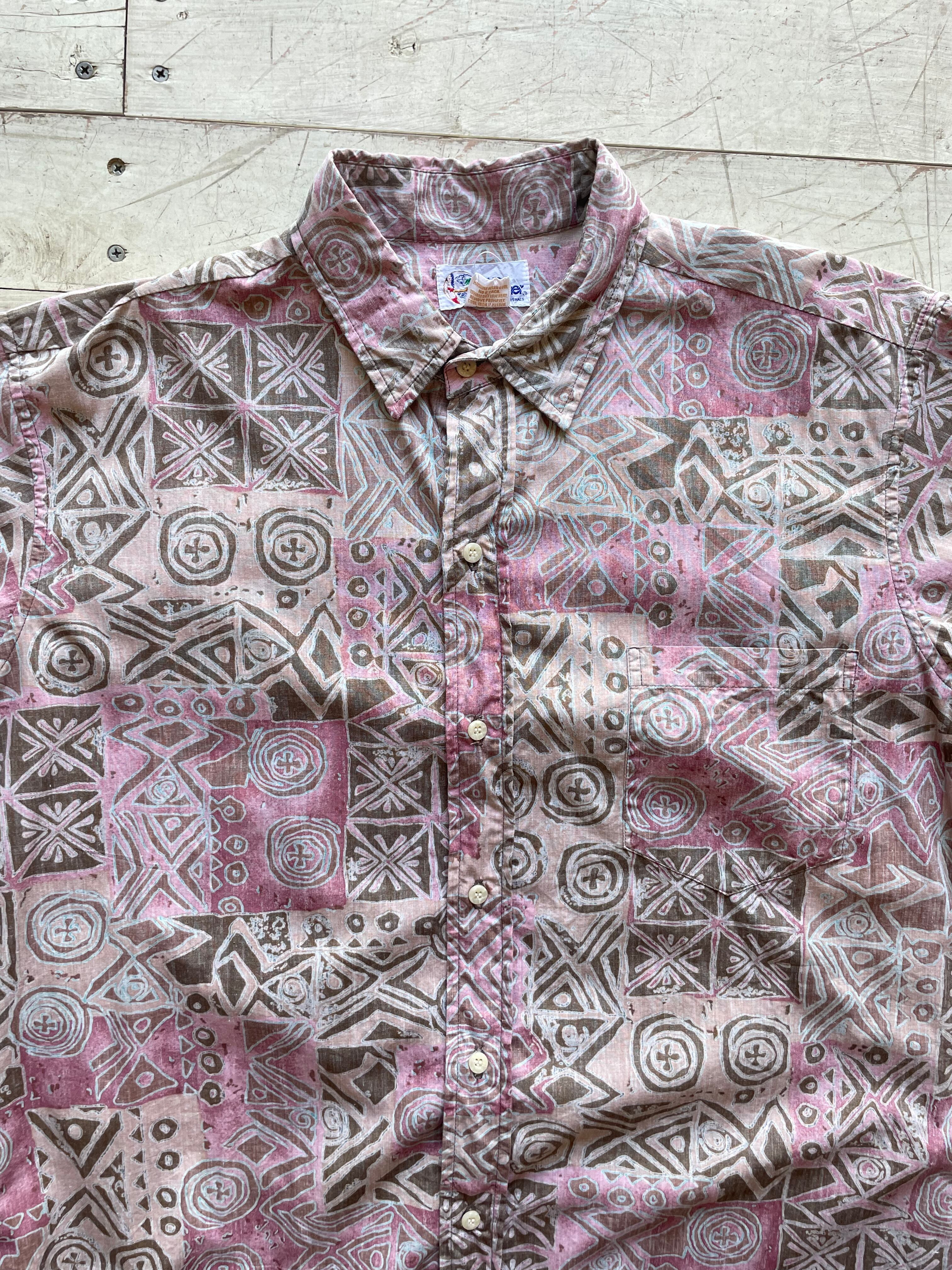 民族風の幾何学模様のコットン100%のシャツ。