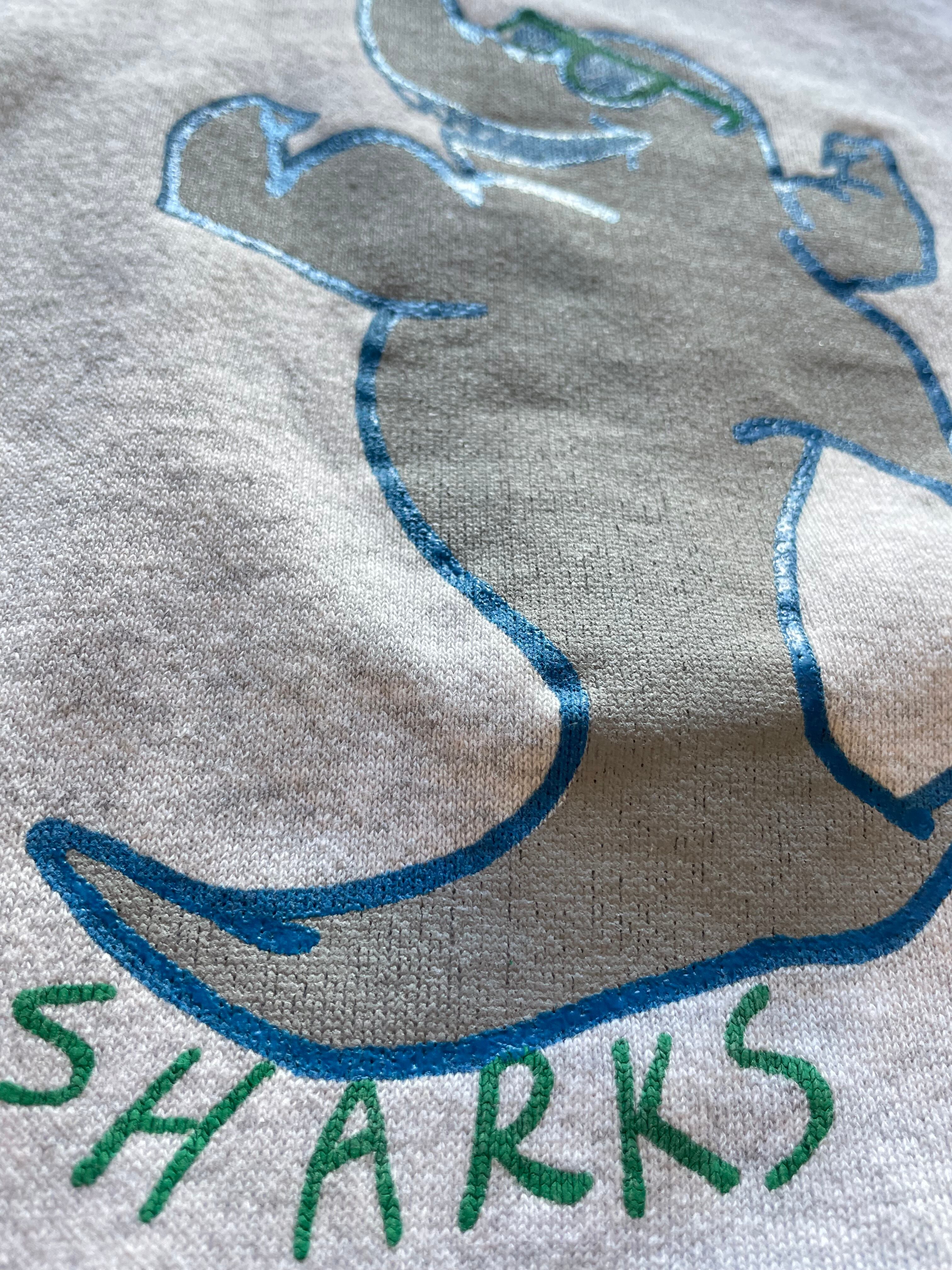 フロントにワンポイントプリント、バックにサメのキャラクターがプリントされています。