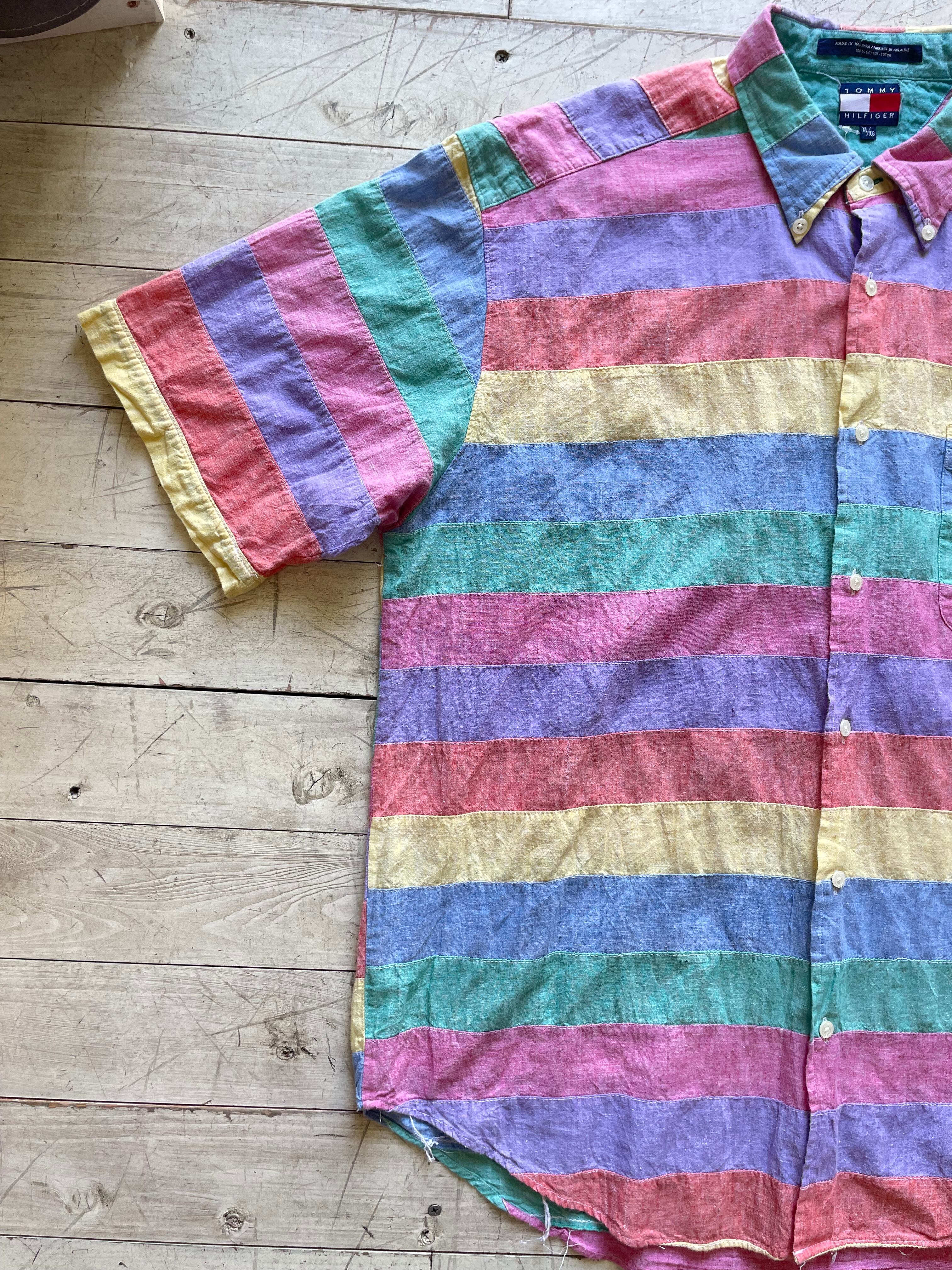 TOMMY HILFIGER Patchwork S/S shirt 古着 us古着 トミーフィルフィガー パッチワークシャツ 半袖シャツ