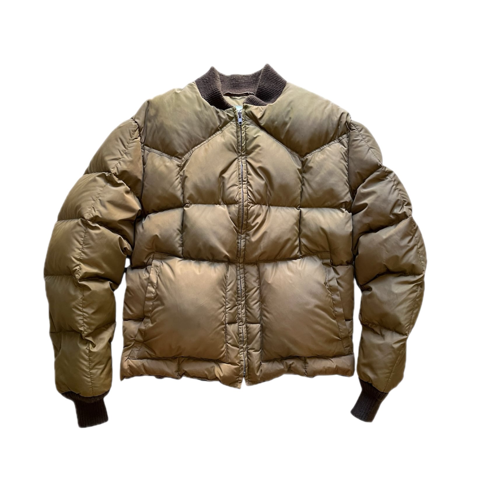 オリーブカラーのショットダウンジャケット。
